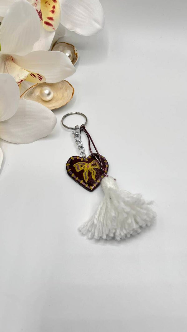 Handgefertigter Schlüsselanhänger aus hochwertiger lufttrocknender Modelliermasse, mit Acrylfarben bemalt und mit Resin versiegelt. Mit dekorativer Quaste und Metallring – ideal als Schlüsselanhänger, Taschenanhänger oder kleines Geschenk.
