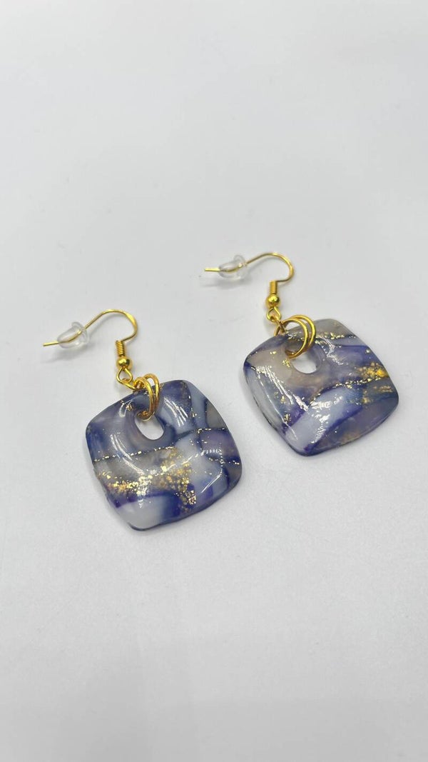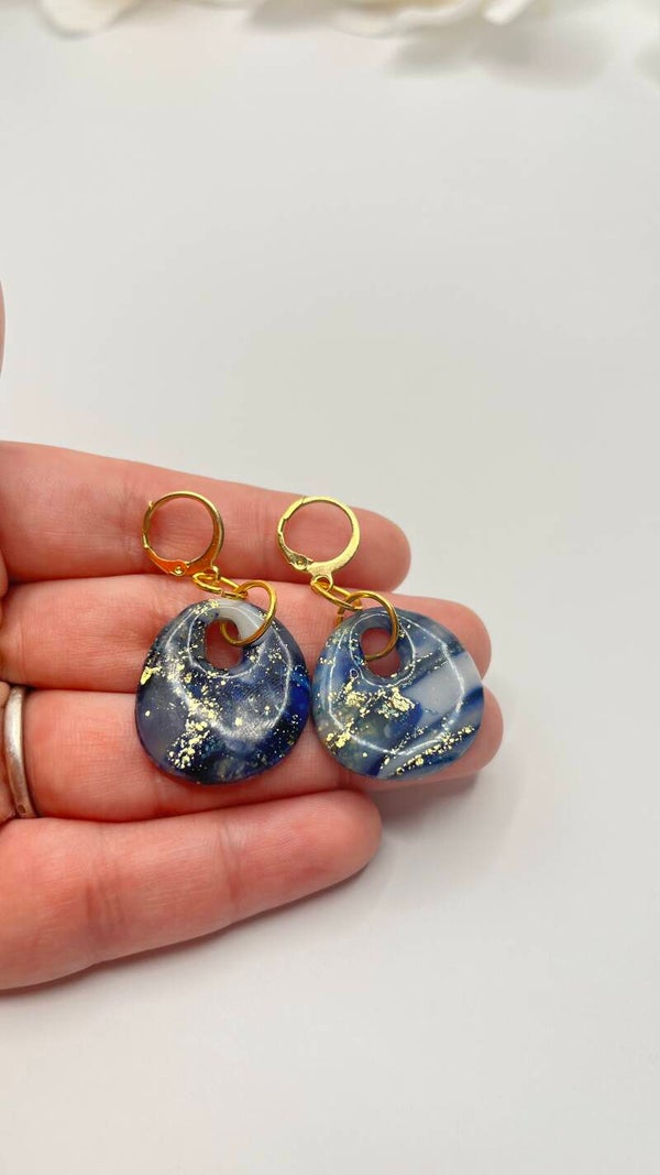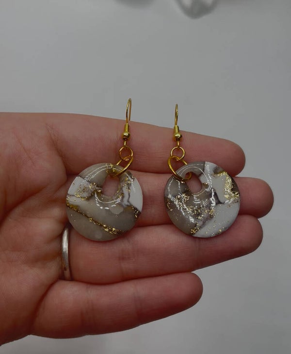 Handgefertigte Ohrringe aus hochwertigem Polymer Clay mit edlem Marmoreffekt und Goldakzenten. Leicht zu tragen, langlebig und mit hypoallergenem Ohrhaken und Metallteilen – ideal für empfindliche Ohren.
