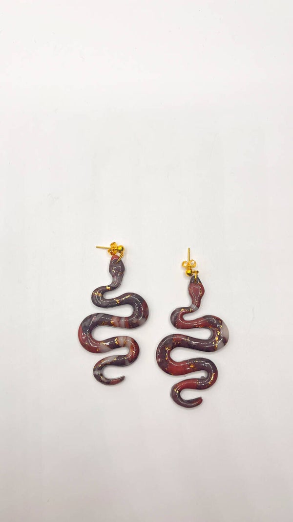 Die Ohrringe werden handgefertigt aus hochwertigem Polymer Clay und mit Alkohol-Inks, Mica-Puder und feinen Goldfolien veredelt. Die mehrschichtigen Burgunder-, Grau- und Rosétöne erzeugen eine tiefe, marmorierte Optik mit luxuriösen goldenen Akzenten. Für eine hochglänzende, langlebige Oberfläche werden die Ohrringe abschließend mit Resin versiegelt.