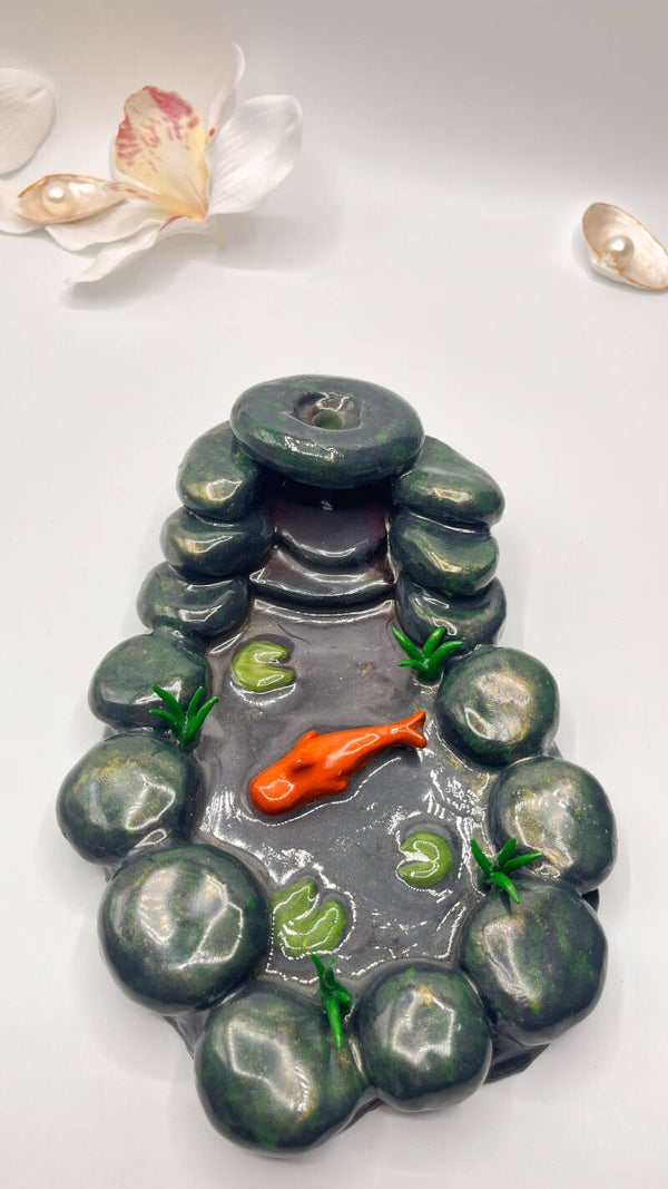 Handgemachter Backflow Räucherstäbchenhalter – Teich & Wasserfall Design