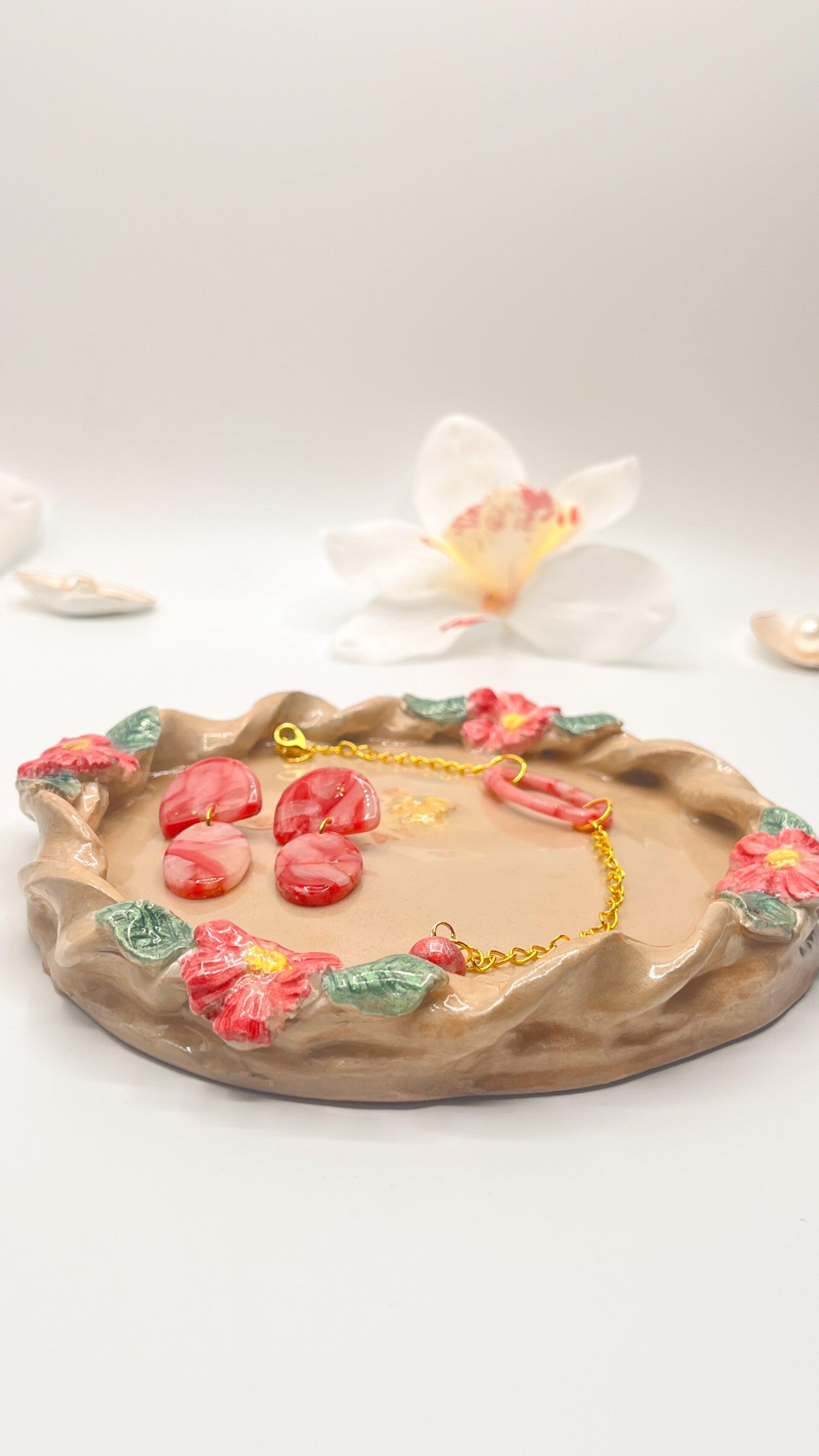 Diese handgemachte Schmuckschale in Blumenform ist ein liebevoll gestaltetes Unikat und eignet sich perfekt zur stilvollen Aufbewahrung von Schmuck, kleinen Accessoires oder Erinnerungsstücken.