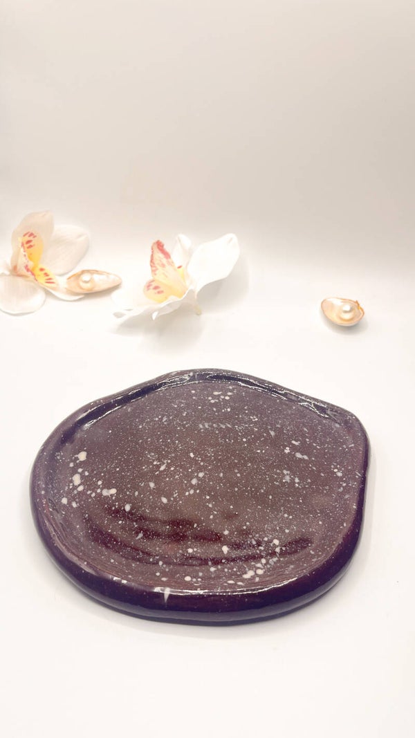 Handgemachte Schmuckschale aus Ton – Lila Sprenkel Design