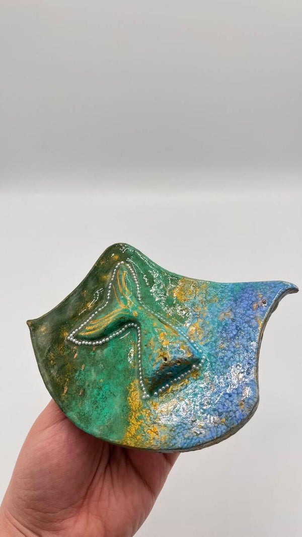 Dieser handgefertigte Räucherstäbchenhalter verbindet funktionales Design mit künstlerischem Ausdruck. Er wird aus hochwertigem Ton von Hand geformt, sorgfältig getrocknet und anschließend mit Acryl- und wasserbasierten Farben bemalt. Die Oberfläche ist mit einer transparenten Harzschicht (Resin) versiegelt, die für intensiven Glanz, Farbtiefe sowie dauerhaften Schutz sorgt.